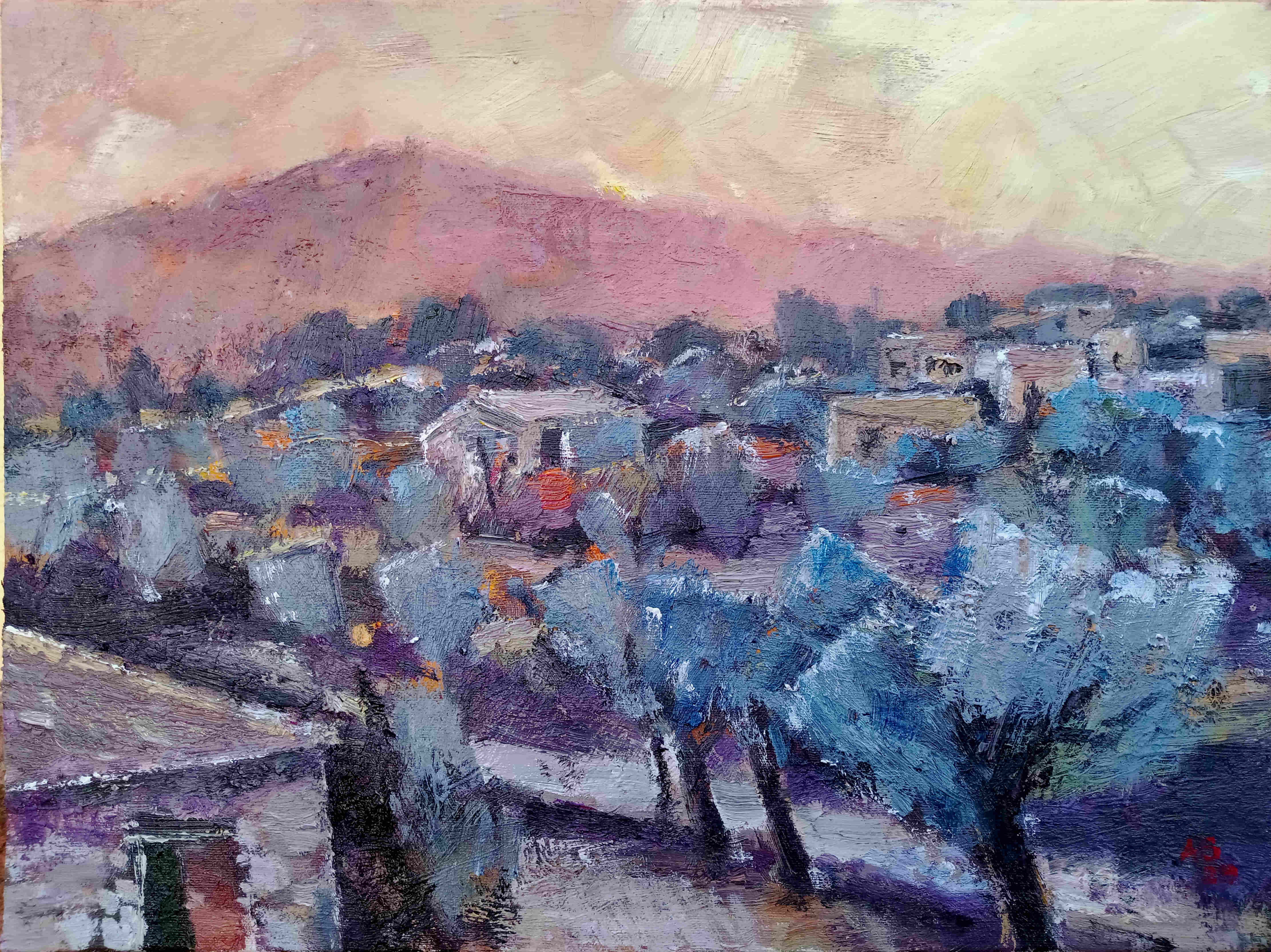 Tramonto Olivenhain-s Verfasst von arnestahl am Januar 22, 2023Januar 22, 2023 Öl auf Leinwand 2018/23, 39x30cm
