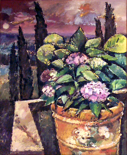 Hortensien und Zypressen